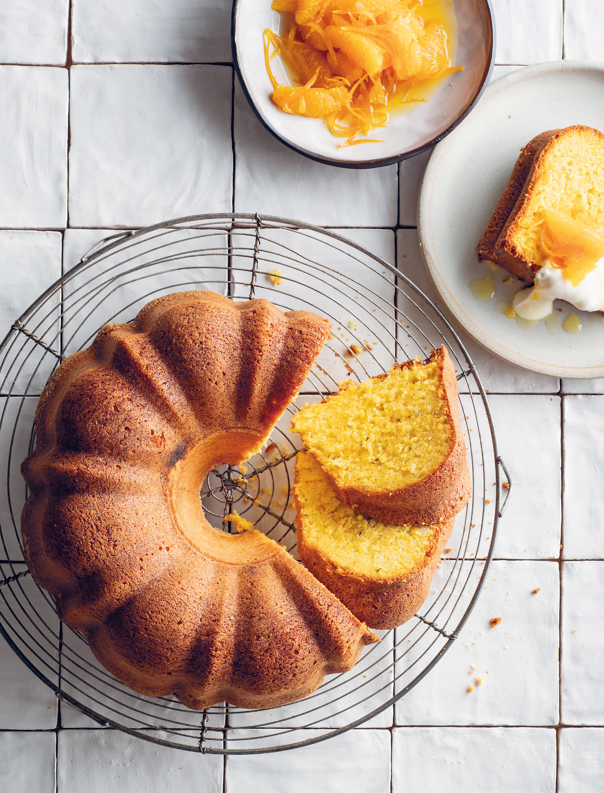 This is a perfect winter cake: the fruitiness of the oil, the freshness of the citrus, and the herbal tones of the rosemary. It’s taken years to get this recipe right. I’ve had so many olive oil cakes that have fallen short of my expectations: some too dense and lacking the lightness and joy of a butter cake; others where the olive oil feels more like a gimmick than a boon. Time has taught me that it’s the eggs that are the key – you need a lot! Consequently, this is a rather large cake (8 eggs will do that) requiring a bundt (ring) tin to ensure it cooks through to the centre without becoming dry on the edges. These tins make for a fabulous-looking cake, definitely a worthy investment!