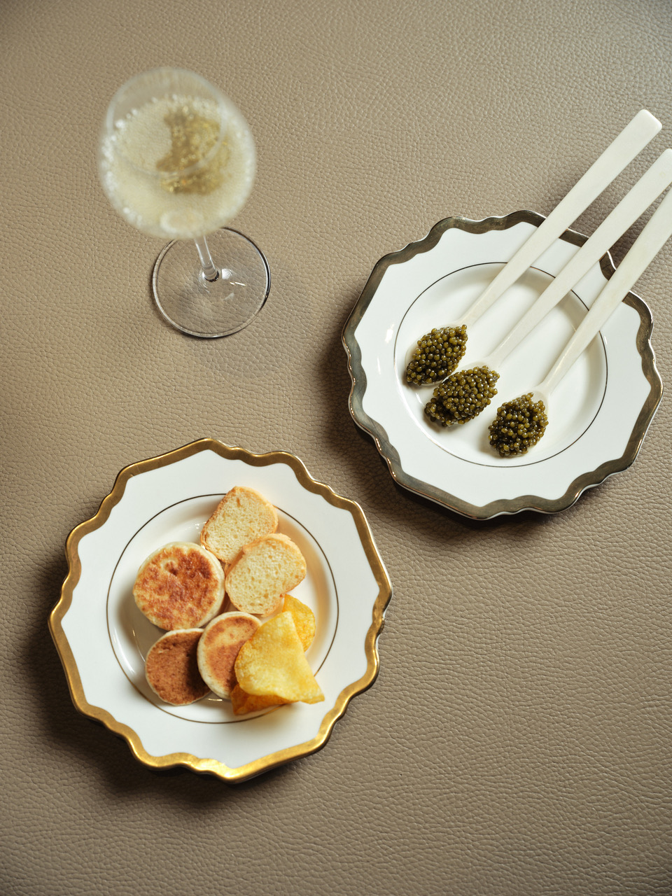 The presentation of the service often includes specialty ice and eye-catching vessels. We love stainless steel, silverware, cut crystal and of course the traditional mother of pearl spoons. It speaks to the history and heritage and sets the scene for a little bit of fantasy for the guests in that moment.