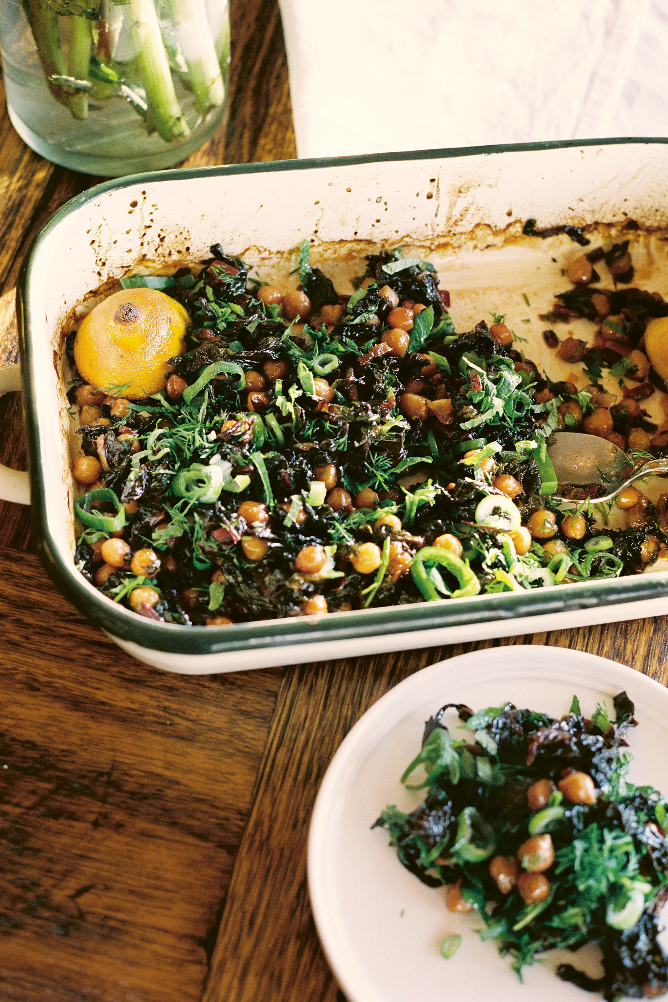 Season with salt, pepper, extra olive oil and the pulp of the baked lemon. The lemon will be mellower than a fresh lemon, but taste as you go – it’ll still be quite acidic.