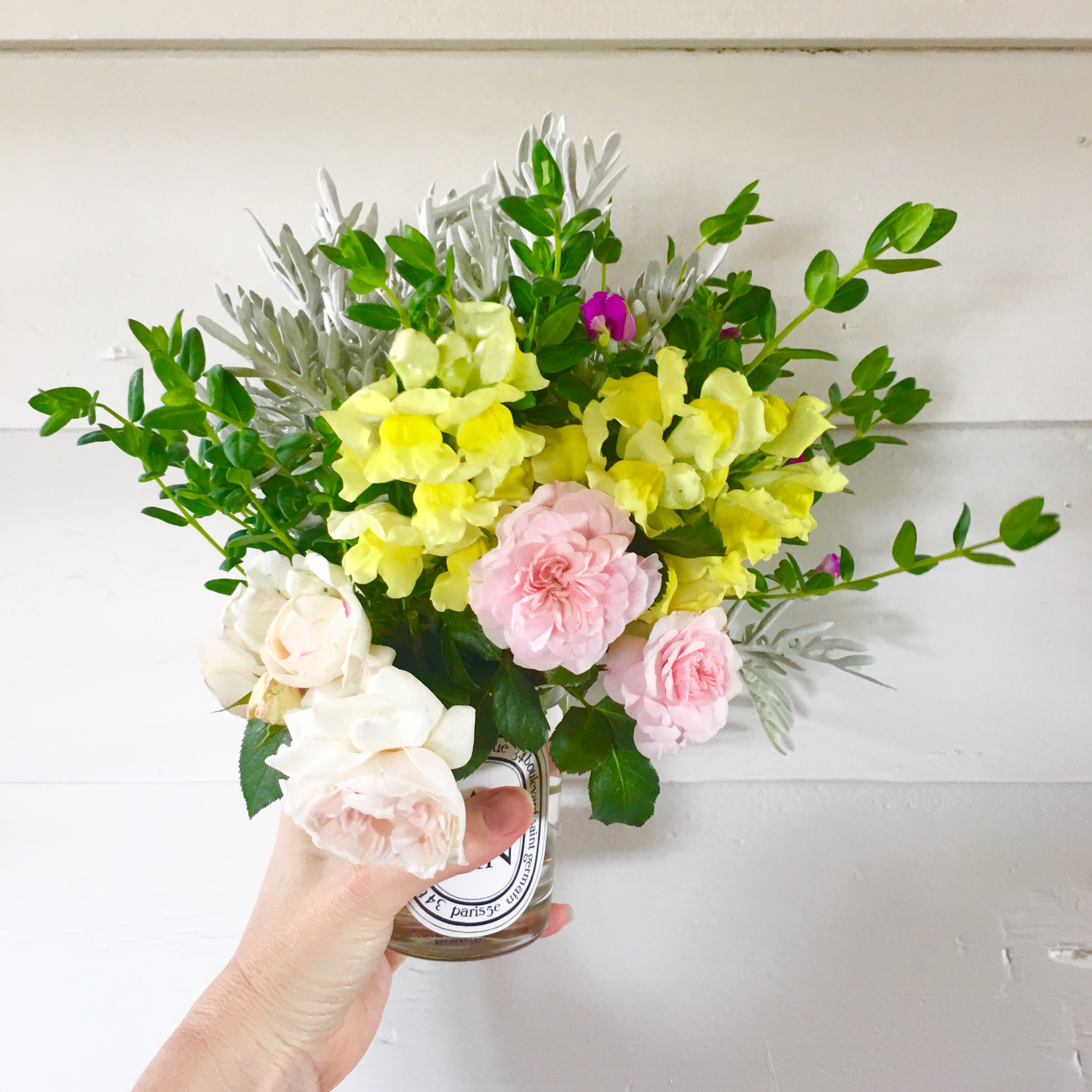 We love to wander around the garden in summer, picking blooms and foliage to create simple, eclectic bouquets. We tie them with pretty ribbon to give as gifts or use upcycled candle jars as vases to put them on display. Choosing flowers and colours that you would not traditionally think go together creates an eclectic style and makes use of some of the more unusual foliage in the garden.
