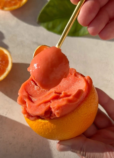 Store in a freezer and when ready to eat serve in orange rind halves. Enjoy!