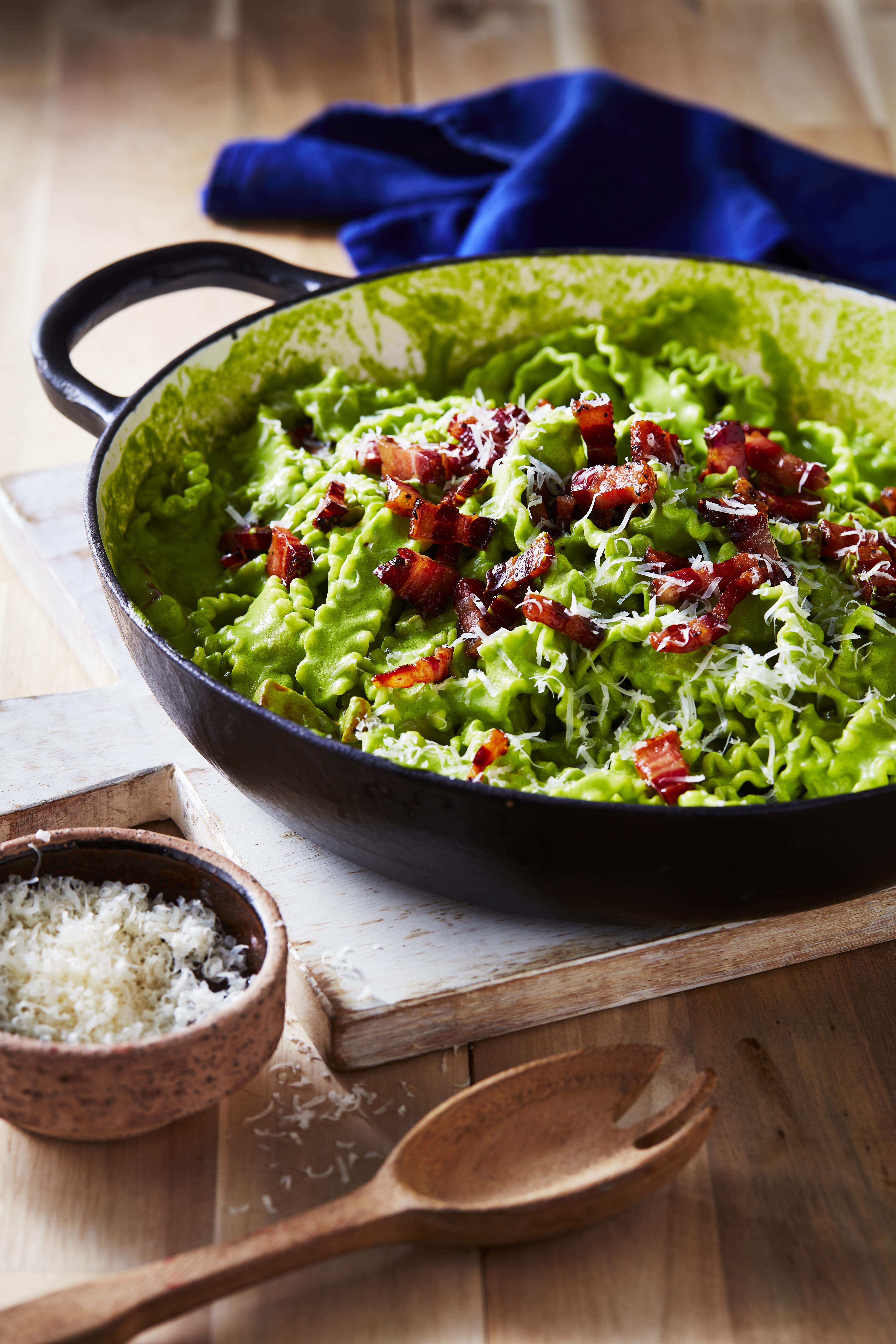 There are seemingly endless pasta shapes to choose from, and even the simplest of sauces – like this pea and ham number here – can be elevated just by just choosing a slightly fancier pasta shape like mafaldine. What counts as ‘fancy‘ is entirely up to you.