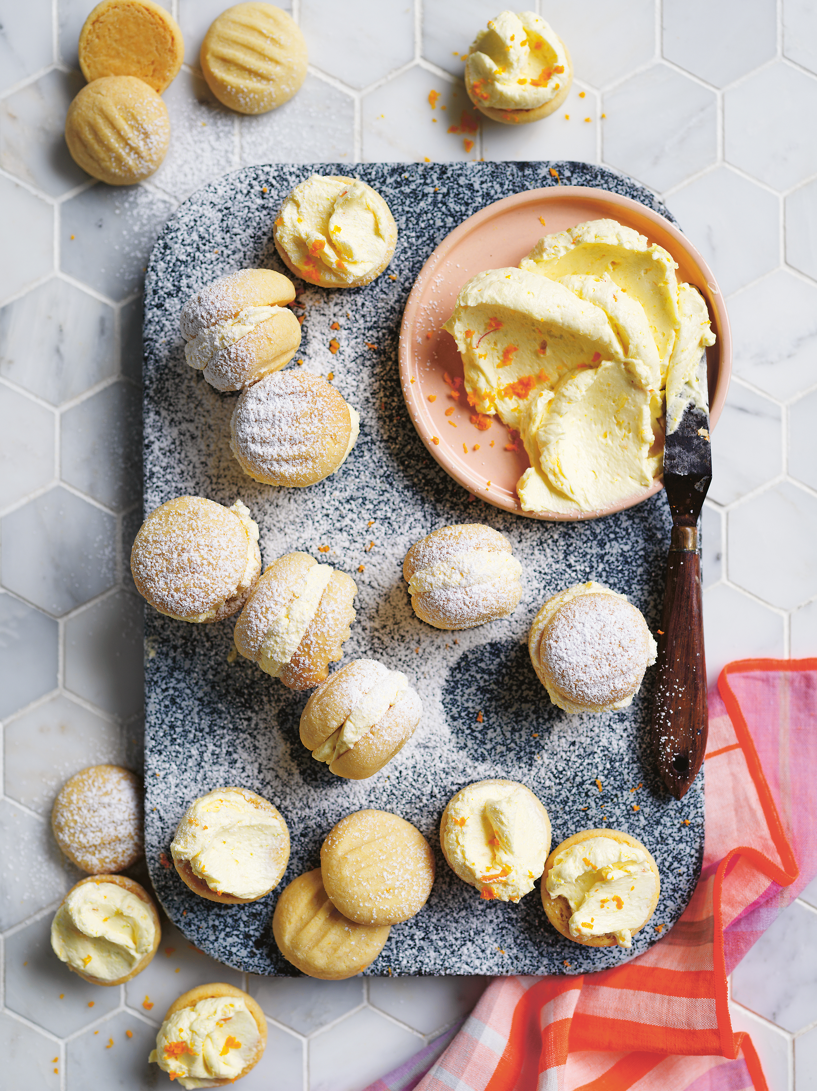You know that version of the song ‘Lady Marmalade’, where Christina Aguilera pumps out that EPIC note as she begins her verse? What a MOMENT, right!? That’s what these melting moments remind me of. The slightly bitter tang of the marmalade in the buttercream is enough to splice through the richness of the biscuit and filling, and as it melts on your tongue, you’ll find yourself having a moment, too. I’ve adopted the custard powder of the classically Aussie yo-yo biscuit, because I like the colour and flavour it provides. Most melting moments recipes use cornflour (cornstarch) — either of these additions stop the flour and fat binding too tightly, which means the biscuit will, quite literally, melt in your mouth.