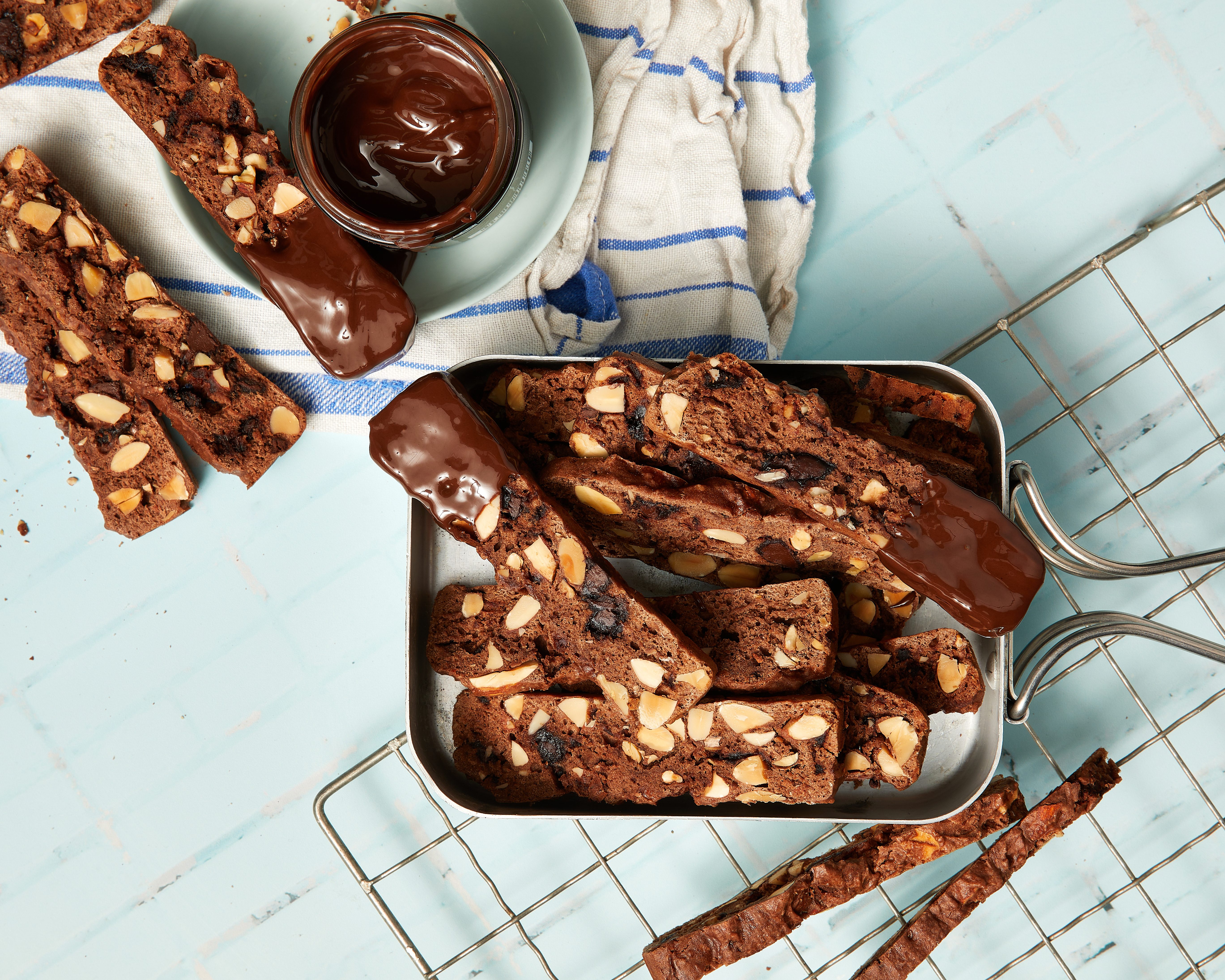 Allow biscotti to cool and harden completely on the tray. Serve dipped or spread with extra Hazelnut Chocolate spread.